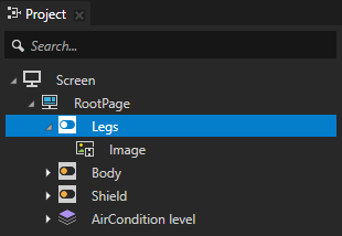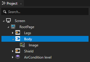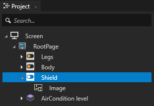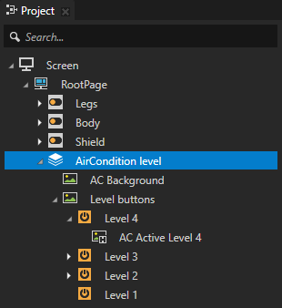 - A Stack Layout 2D node named AirCondition level contains the background image of the application user interface and an image node which contains: