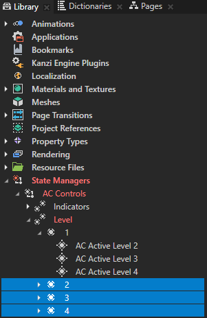 - In the Library > State Managers press Alt and right-click the AC Controls state manager, select State Group, and name it Level.