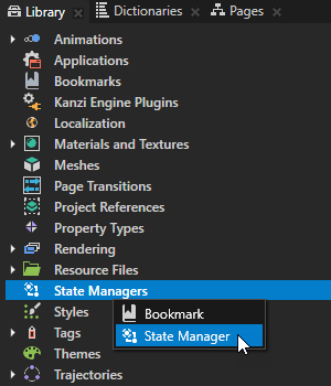 - In the Library press Alt and right-click State Managers, select State Manager to create a state manager, and name it AC Controls.
