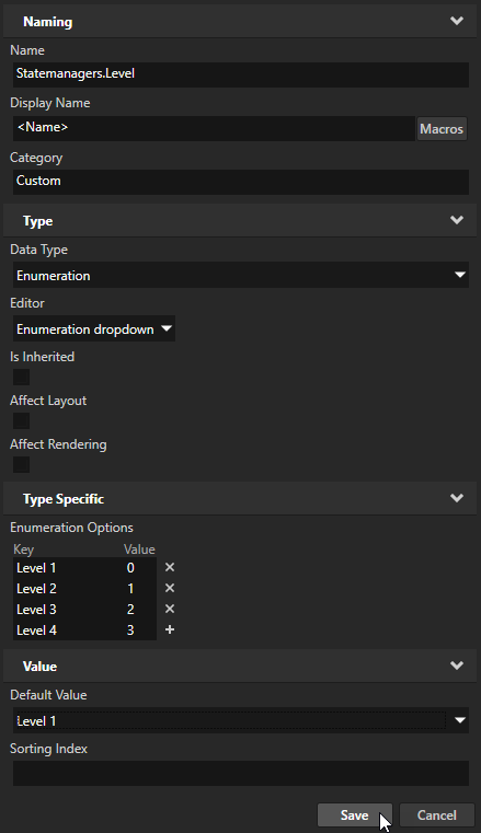 - Name to Statemanagers.Level