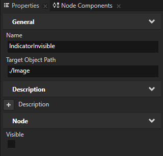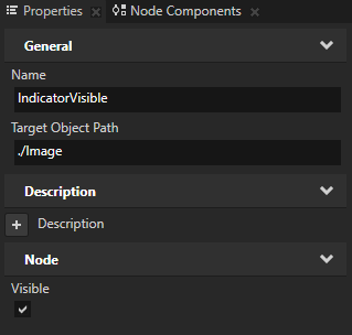 - In the On state press Alt and right-click, select State Object to create a State Object, name it IndicatorVisible, and in the Properties: