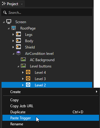 - In the Node Components right-click the Button: Click trigger and select Copy.
