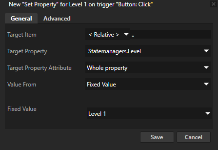 - Target Property to Statemanagers.Level