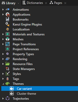 - In the Library press Alt and right-click Themes, select Theme Group, and name it Car variant.