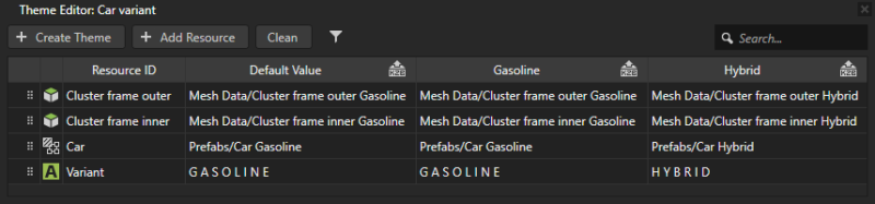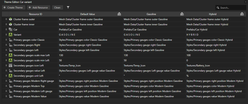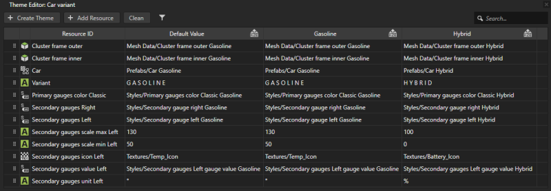 - For the Hybrid theme set the resource ID to point to the Car Hybrid prefab.