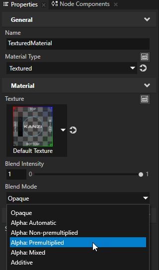 4. In the Library > Materials and Textures > Materials select the material you use for the model and in the Properties set the Blend Mode property to Alpha: Premultiplied.
