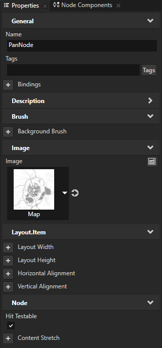 3. In the Project select the node you created in the previous step, in the Properties add the Hit Testable property, and set it to enabled.