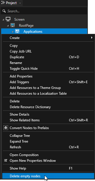 To delete Empty Node nodes without child nodes using a Kanzi Studio plugin: