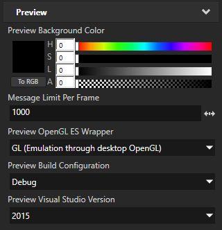 - Preview Build Configuration to Debug
