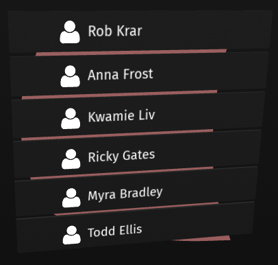 For example, create a Grid List Box 3D node which shows a list of contacts. - Scale and position the nodes that you created so that the node you want to use as the stencil outlines the area you want to show of the node to which you want to apply the stencil.