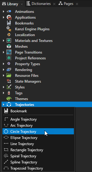 - In the Library press Alt and right-click Trajectories and select Circle Trajectory.