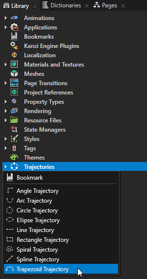 - In the Library press Alt and right-click Trajectories and select Trapezoid Trajectory.