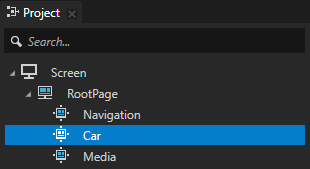 In this section you use the Pages window to create three Page nodes, each representing a different part of your application. Use the Page nodes to create the structure of the user interface in your application, and the Page Host nodes to manage navigation requests and transitions between Page nodes under a Page Host node. For example, you can use Page and Page Host nodes to create different parts of the user interface in your Kanzi application, such as Page Host nodes Home, Media, , or Settings screens, each having their own hierarchy of Page and Page Host nodes.