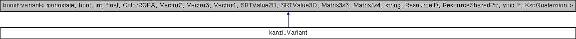 | typedef variant<monostate, bool, int, float, ColorRGBA, Vector2, Vector3, Vector4, SRTValue2D, SRTValue3D, Matrix3x3, Matrix4x4, string, ResourceID, ResourceSharedPtr, void*, KzcQuaternion> kanzi::Variant::BaseClass |