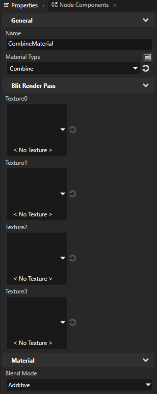 - In the Library > Materials and Textures > Materials select CombineMaterial and in the Properties set the Texture0, Texture1, Texture2, and Texture3 properties to < No Texture >.