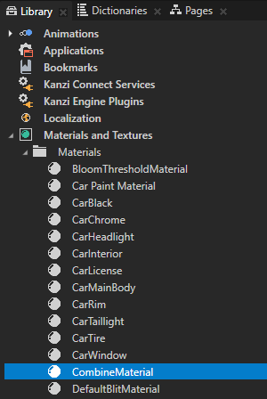 - In the Library right-click Materials and Textures, select Load Material Type From Disk, go to <KanziWorkspace>/Tutorials/Bloom/Assets, and load the Combine.kzmat material type.