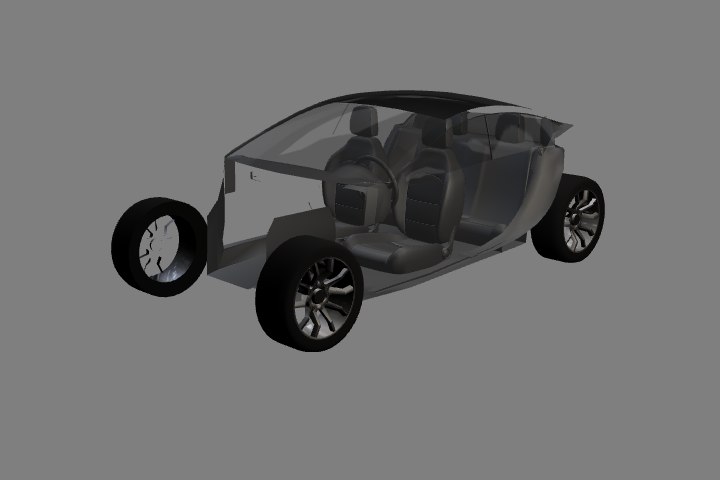 In this tutorial you render these nodes in the Car Scene prefab across three frames:- Pass 1 Models contains the models for the car interior, tires, and windows.