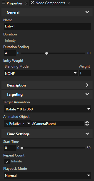 - The Fast Reverse Rotation and Slow Rotation timeline sequences define the animations that you use in the last step of this tutorial to rotate the car at two different speeds and directions. The two timeline sequences play the same animation, but the Timeline Entry in each Timeline Sequence sets a different duration and playback mode for the animation.