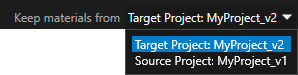 • Source Project: <ProjectName> to import the materials you use for the objects in the source.