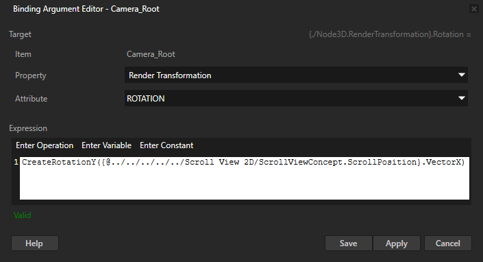 CreateRotationY({@../../../../../Scroll View 2D/ScrollViewConcept.ScrollPosition}.VectorX)