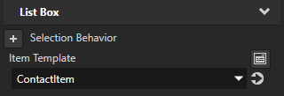 2. 工程 (Project) 中,创建或选择列表框节点,然后在属性 (Properties) 中添加项模板 (Item Template) 属性并将其设置为您希望列表框节点使用的预设件模板,以显示来自您数据源中的列表数据对象的数据。请参阅使用网格列表框 (Grid List Box) 节点 使用 3D 轨迹列表框 (Trajectory List Box 3D) 节点
