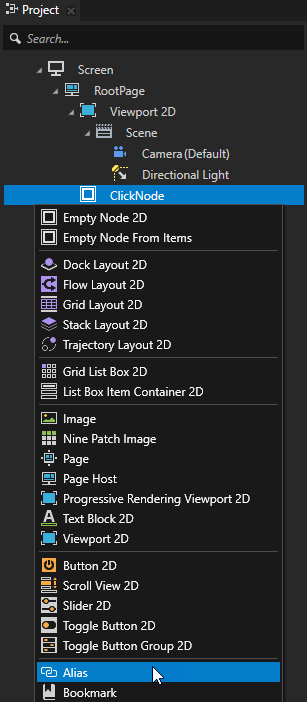 4. 工程 (Project)按下 Alt 并右键点击 您创建的节点并选择别名 (Alias)
