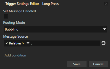 使用 长按 (Long Press) 触发器响应长按手势。例如,您可以更改用户按下节点时的节点外观。请参阅使用长按 (Long Press) 触发器