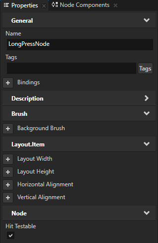 3. 工程 (Project) 中选择您在上一步中创建的节点,在属性 (Properties) 中添加可测试命中 (Hit Testable) 属性,并将其设置为启用。