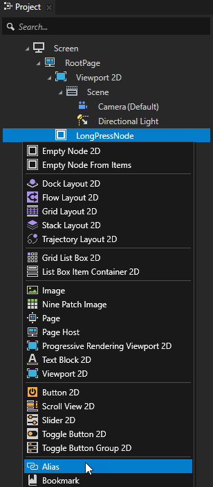 4. 工程 (Project)按下 Alt 并右键点击 您创建的节点并选择别名 (Alias)