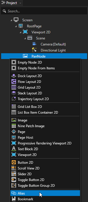 4. 工程 (Project)按下 Alt 并右键点击 您创建的节点并选择别名 (Alias)