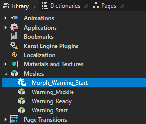 例如,导入一个 3D 模型,其中包含一个名为 Morph_Warning_Start 的变形以及网格 Warning_StartWarning_Ready