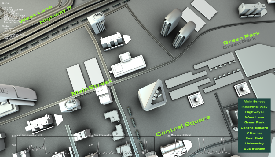 例如,要显示 Main loop: animationMain loop: renderingMain loop:性能 HUD (Performance HUD) 中的 HUD 图: