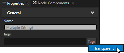3. (可选)如果在场景 (Scene) 节点含有透明 3D 节点,在工程 (Project) 中选择节点,在标签 (Tags) 属性旁的 属性 (Properties) 中点击 标签 (Tags) 按钮并选择 透明 (Transparent)