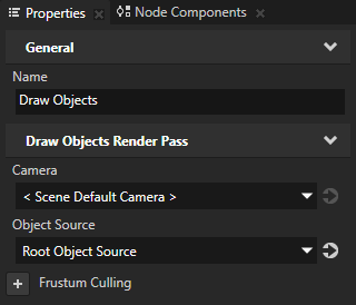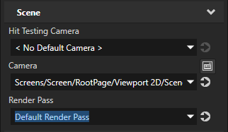 2. 工程 (Project) 中选择您要渲染其内容的 场景 (Scene) 节点,并在属性 (Properties) 中将 渲染通道 (Render Pass) 属性设为您创建的 默认渲染通道 (Default Render Pass)