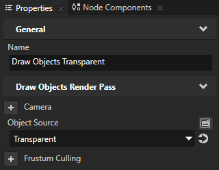 • 名为绘图对象透明 (Draw Objects Transparent)绘图对象渲染通道 (Draw Objects Render Pass) 渲染透明 (Transparent) 过滤器收集的节点。