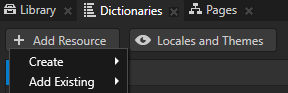 - 在字典 (Dictionaries)中点击+ 添加资源 (+ Add Resource) 并选择:
