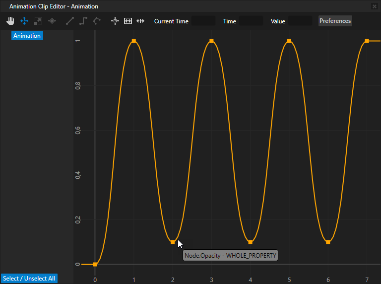 - 创建动画 (Animation) 或动画剪辑 (Animation Clip) 资源。使用此动画更改在上一步创建的状态中使用的属性值。请参阅创建关键帧动画。