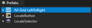 - In the Prefabs drag the LocaleSelector prefab to the IVI Grid LeftToRight > Locales node to create a prefab placeholder.