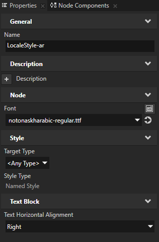 - Select the LocaleStyle-ar and in the Properties add and set: