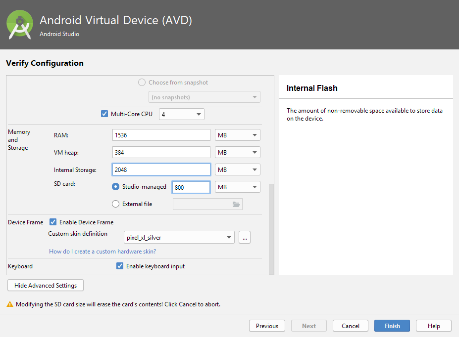 In Android Studio in the Android Virtual Device configuration increase the Internal Storage and SD card storage sizes.