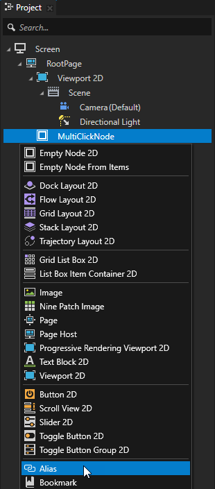 4. In the Project press Alt and right-click the node you created and select Alias.