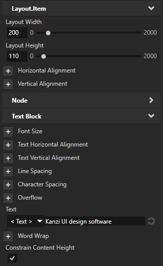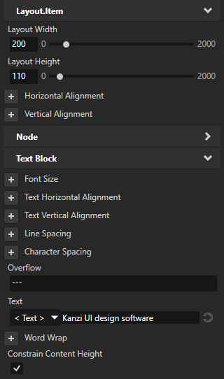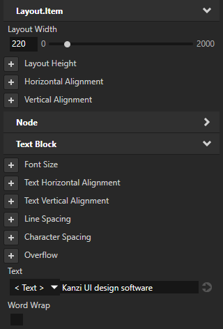 When you restrict the width of a Text Block node with the Layout Width property, you can set how Kanzi lays out the text that is longer than the width of that Text Block node:
