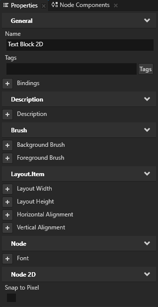 To disable the Snap to Pixel property, select the Text Block 2D node for which you want to disable that property and in the Properties add and disable the Snap to Pixel property.![]()