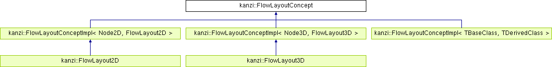 FlowLayoutConcept defines the data and property types used to implement a flow layout. FlowLayoutConceptImpl derives from StackLayoutConcept to provide the functionality to implement a flow layout. Do not use these classes directly. To use a flow layout in your application use FlowLayout3D or FlowLayout2D. To implement a custom flow layout derive from FlowLayoutConceptImpl.