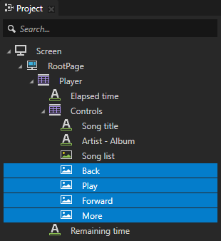 本教程的起点资料是存储在 <KanziWorkspace>/Tutorials/Dynamic layout/Assets 目录中的 Dynamic layout.kzproj Kanzi Studio 工程文件。