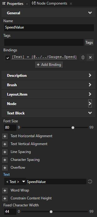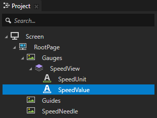 {@../../Gauges.Speed}使用绑定,您可以在SpeedValue 节点中显示 Gauges.Speed 属性的当前值。