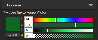 建议预览 (Preview) 的背景默认为黑色。如果想让内容从 预览 (Preview) 背景中突出出来,选择 > ,然后在 属性 (Properties) 中将 预览背景颜色 (Preview Background Color) 属性设置成想要的颜色。