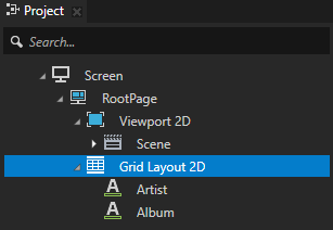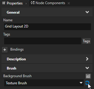 例如,创建一个 2D 网格布局 (Grid layout 2D) 节点,然后在 属性 (Properties) 中添加 背景笔刷 (Background Brush) 属性,并将其设置为您在第一步中创建的笔刷。