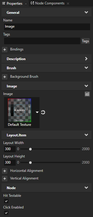 //启用图像 (Image) 节点的点击手势,添加并启用点击已启用 (Click Enabled) 和可测试命中 (Hit Testable) 属性。
