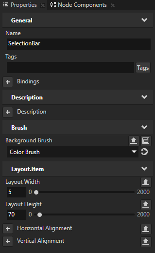 - In the Prefabs press Alt and right-click the LocaleButton prefab, select Empty Node 2D, name it SelectionBar, and in the Properties set: